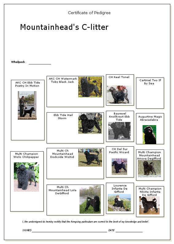 Born on 16th June 2009 5 boys and 2 girls CH M's Cristiano DeGifford M's Cipriano DeGifford M's Chiado DeGifford M's Chino DeGifford M's Chaninho DeGifford CH M's Czarina DeGifford CH M's Catraia DeGifford