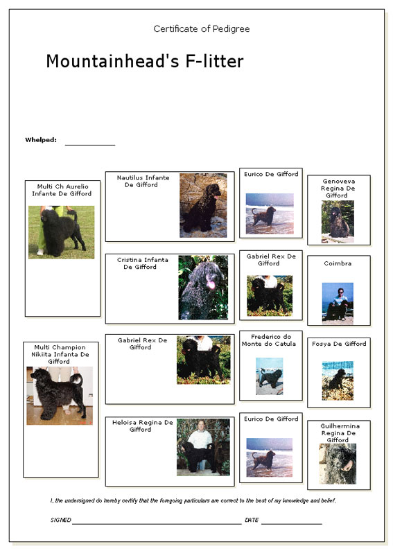 Born on 4th March 2006 5 boys and 4 girls CH M's Faro DeGifford CH M's Figo DeGifford M's Fenix DeGifford M's Fifi DeGifford M's Focus DeGifford M's Fanny DeGifford M's Fina DeGifford M's Festa DeGifford M's Fiona DeGifford
